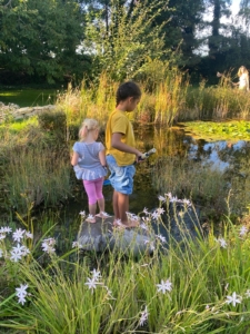 „Geschwister-Tag“ im Naturgarten- selbstgemachter Apfelsaft, Leben im Teich, Vielfalt der Pflanzen