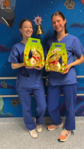 „Schau Mama, so einen großen Schoko-Osterhasen habe ich noch nie gesehen“, sagte eines der Kinder mit funkelnden Augen und umarmte den 500g schweren Hasen. „Was für eine tolle Überraschung!“, antwortete die Mutter, „Wir waren gerade so traurig, dass wir die Osterfeiertage in der Klinik verbringen und nicht, wie sonst, die Ostereier im Garten suchen konnten!“