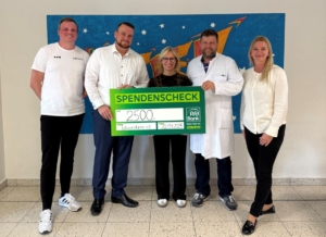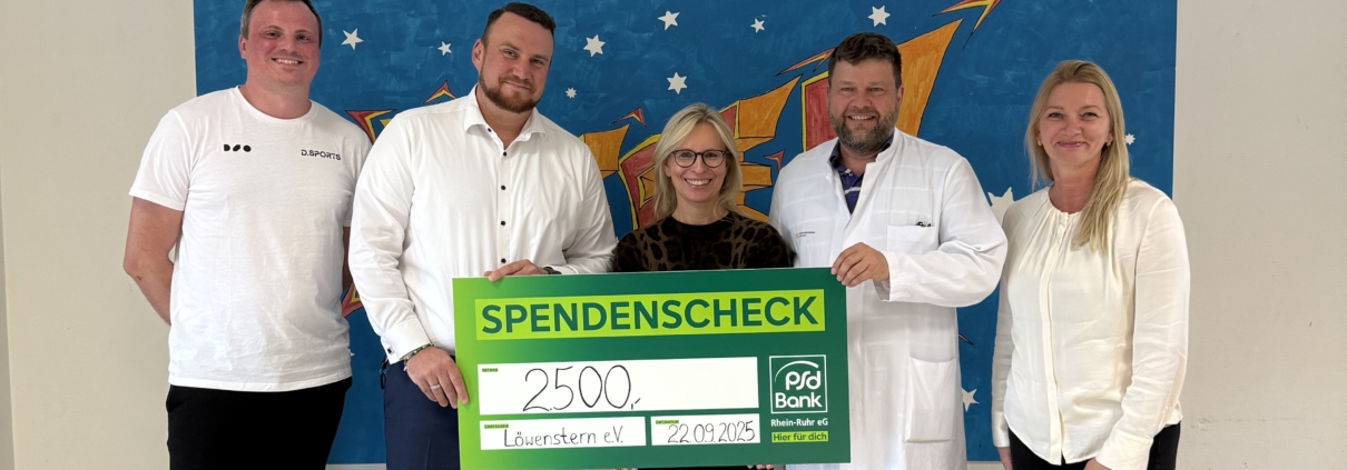 Beim 3×3 Basketballturnier Anfang Aug 2025, veranstaltet von D.SPORTS, gab es auch einen Charity-Event der PSD-Bank: jeder Treffer in einen Basketballkorb wurde in eine 5 Euro-Spende umgewandelt. So kamen stolze EURO 2.500,– für den Verein Löwenstern zugunsten krebskranker Kinder an der Uniklinik Düsseldorf zusammen.
