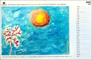 Diese Kunstwerke haben krebskranke Kinder im Rahmen des von Löwenstern finanzierten Projekts „Mobiles Kunstatelier“ in der Kinder-Onkologie des Uniklinikums Düsseldorf erschaffen. Einige wurden nun zu dem Kalender 2026 liebevoll zusammengestellt und beschriftet und mit einigen typischen Eigenschaften der jeweiligen Monate, z.B. Januar: „der Monat des Anfangs, der Türen zwischen Vergangenheit und Zukunft“ ergänzt.