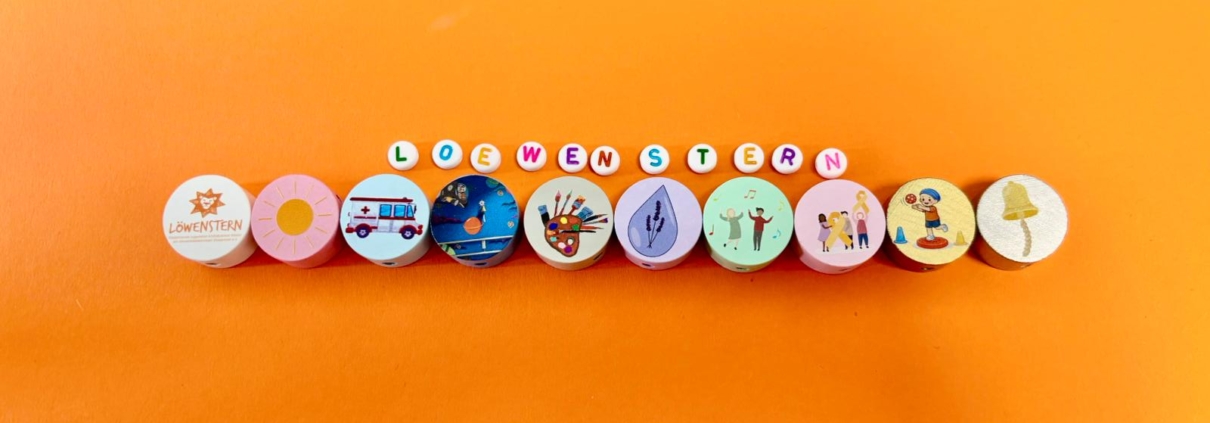 Jede Perlenschnur startet mit dem Namen und dem Löwensternsymbol. Sie endet mit der „Perle mit der Glocke“, denn bei der Entlassung aus der intensiven Therapie verabschiedet sich das Behandlungs-Team vom erkrankten Kind und dessen Familie im Rahmen des Rituals „Glocke läuten“.