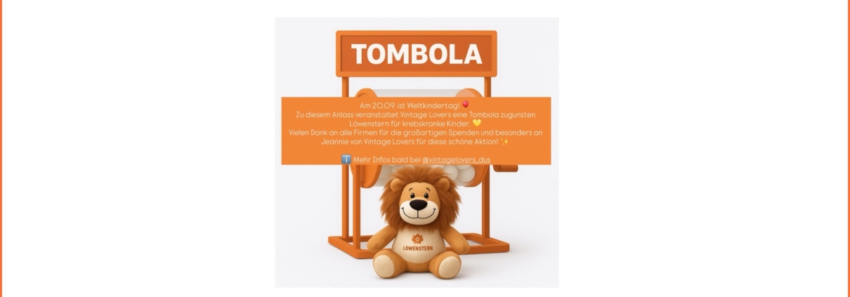 Bei Vintage Lovers , dem Second Hand Laden in Düsseldorf, fand am Weltkindertag eine großartige Charity- und Tombola-Aktion statt. Neben vielen tollen gestifteten Preisen u.a. von killepitschofficial, laekkert.deli, bezirk02, noojbooijs, hessehollaneder, space_burger, lakritz_boutique, anbanhmi, Unterhaltungsliebslingsstücke, Fett Weinbar, Sir Walter, Hotel Hotel, wurden auch viele Second Hand Artikel zugunsten von Löwenstern gekauft.