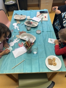 Es duftete nach Waffeln, Crepes, Kuchen und Punsch und viele Kinder nutzten die Gelegenheit, schöne Weichnachtskarten oder Bilder zu basteln.